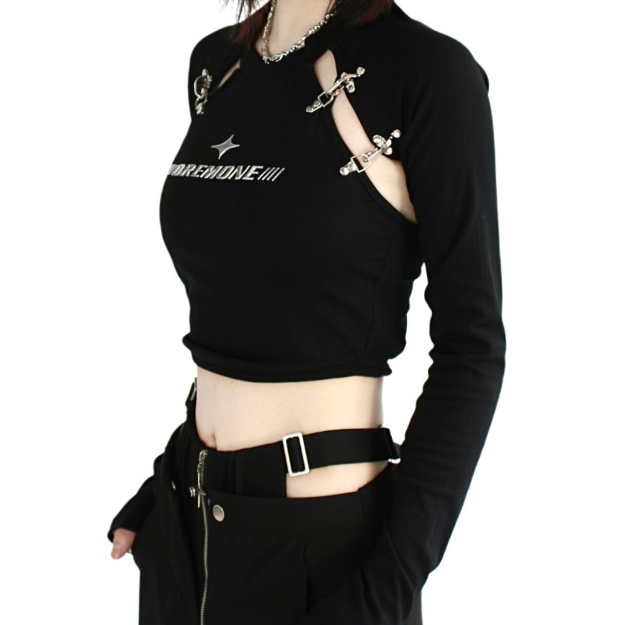 脇辺りがクロップドデザインになったトップスです。