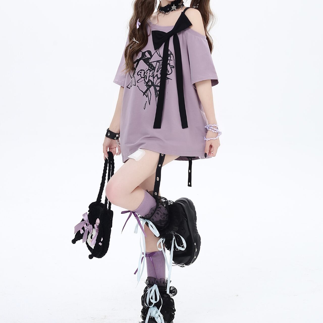 大きなリボンが特徴的な可愛いオフショルトップスです。