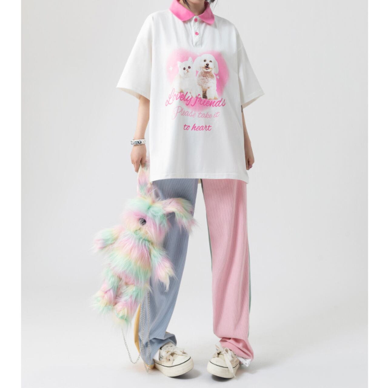ラブラブワンちゃんネコちゃんデザインポロシャツです。